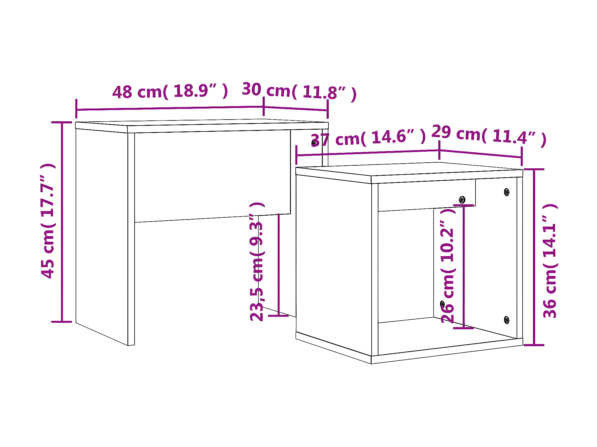 Ensemble de tables basses Chêne sonoma 48x30x45 cm Aggloméré
