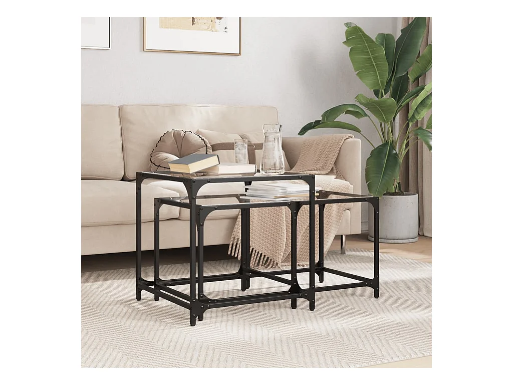 Tables basses gigognes 2 pcs dessus en verre transparent acier FR584240