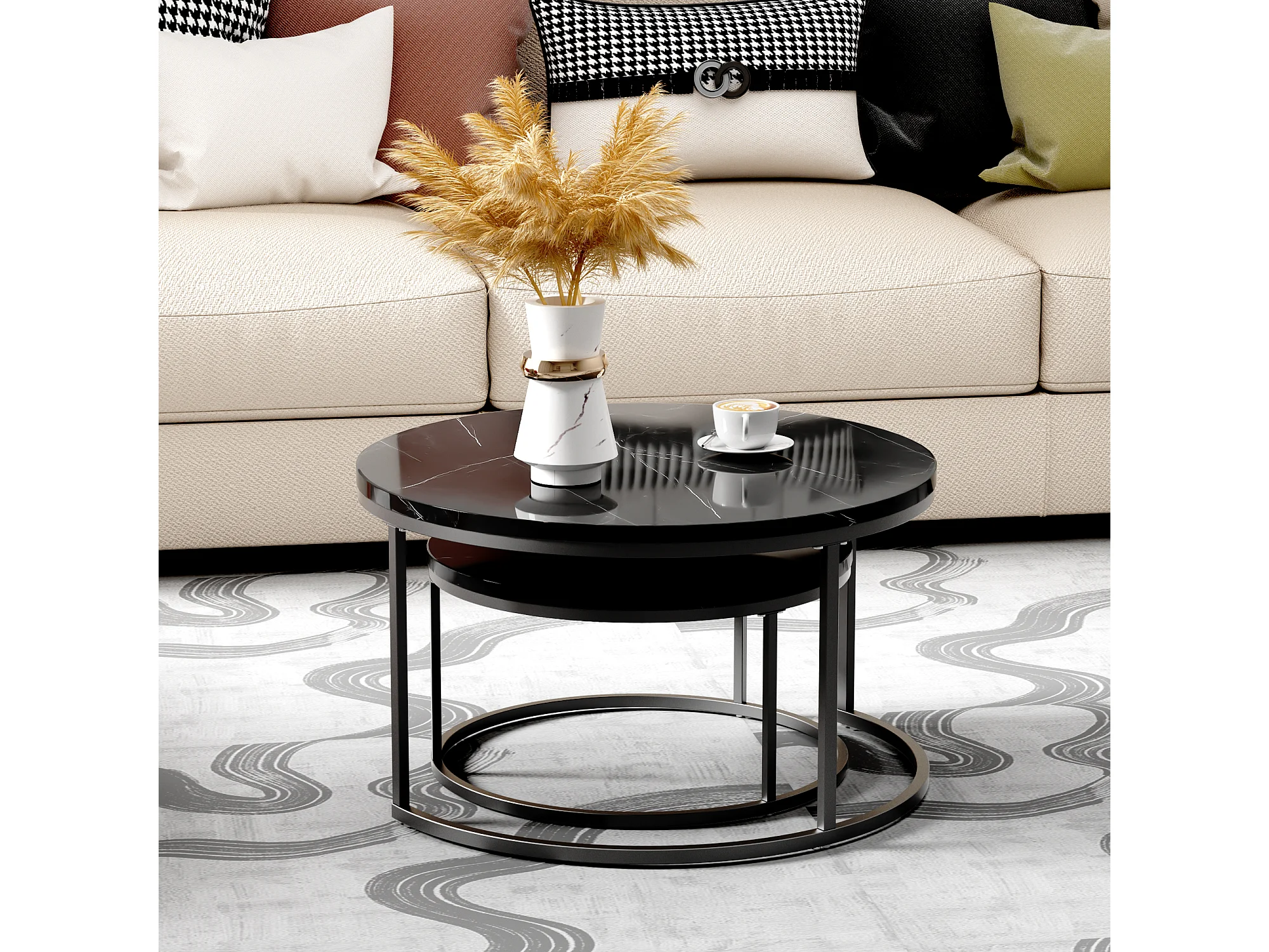 Tables basses gigognes 2 pièces au design élégant avec cadre en métal solide et plateau MDF facile à nettoyer