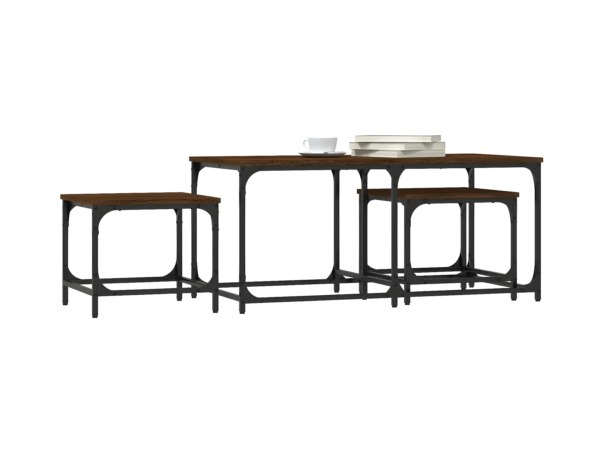 Tables basses gigognes 3 pièces chêne marron bois d'ingénierie