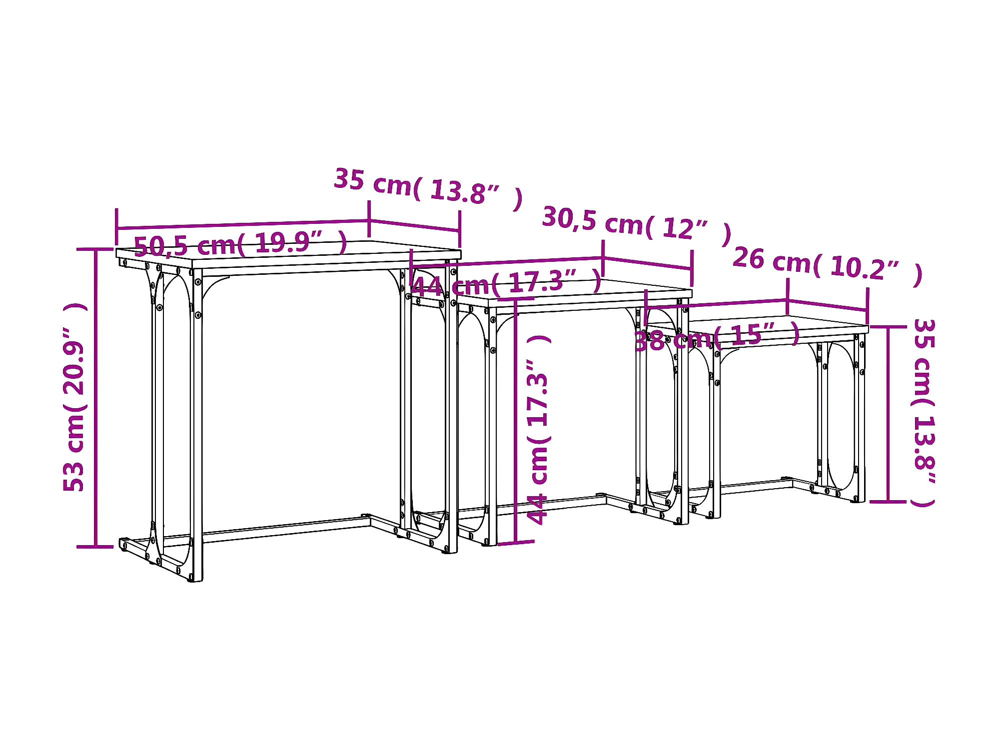 Tables basses gigognes 3 pcs chêne sonoma bois d'ingénierie