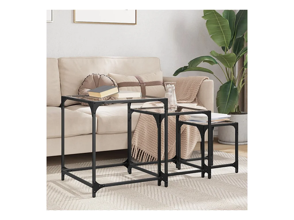 Tables basses gigognes 3 pcs dessus en verre transparent acier