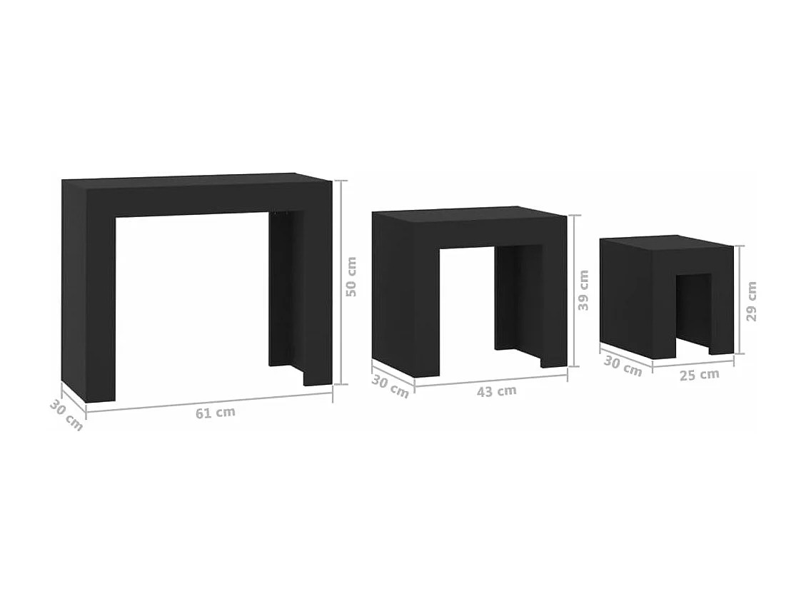 Tables basses gigognes 3 pièces Noir Aggloméré