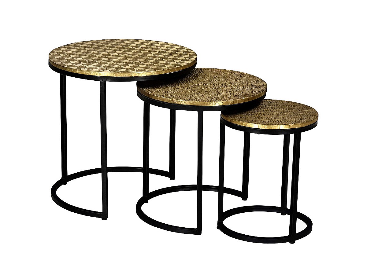 Tables basses gigognes BELAMI - Motifs Sculptés - Métal - Coloris : Doré et pieds noirs