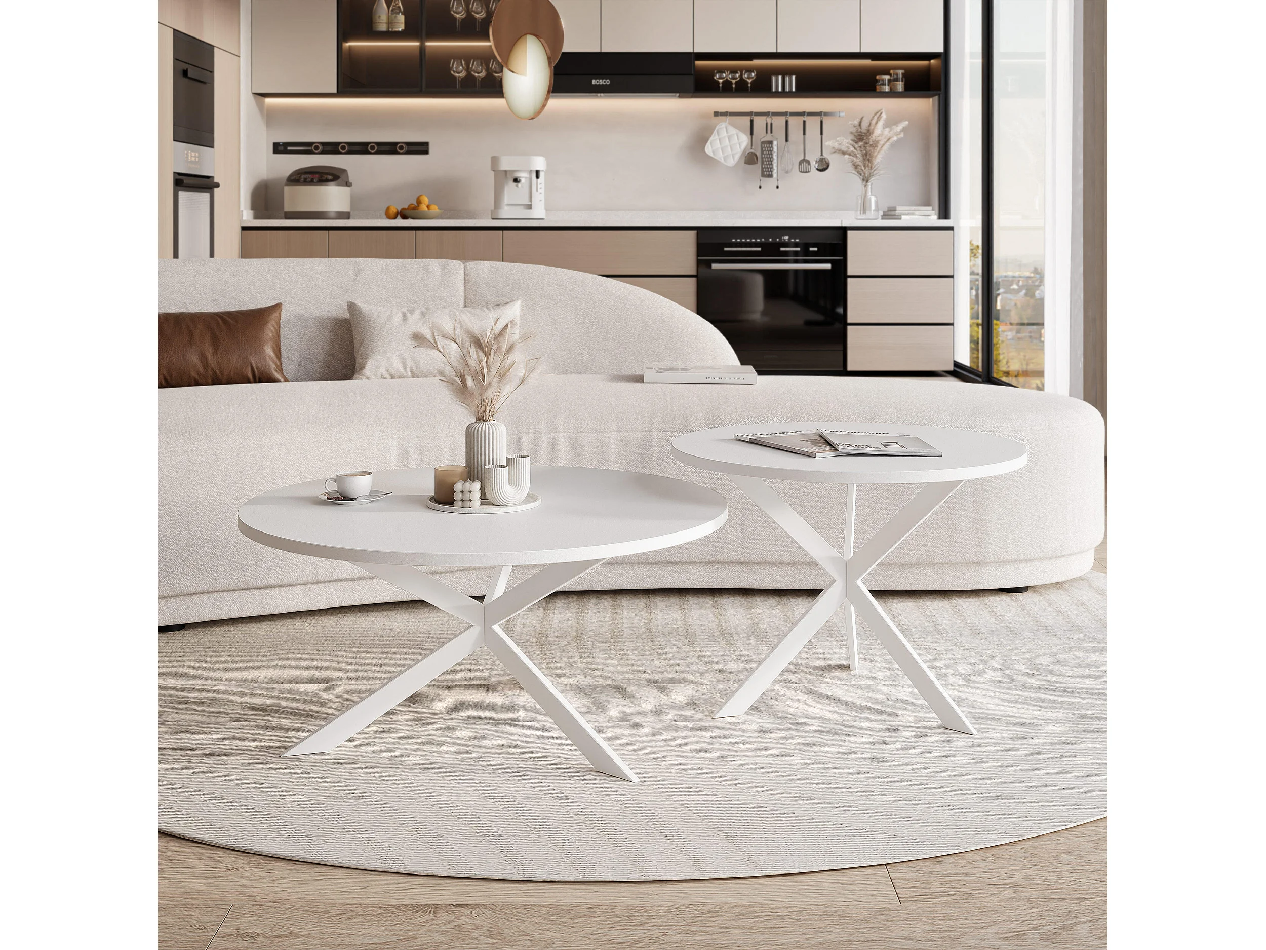 Tables basses gigognes LIBERO - blanc et métal blanc
