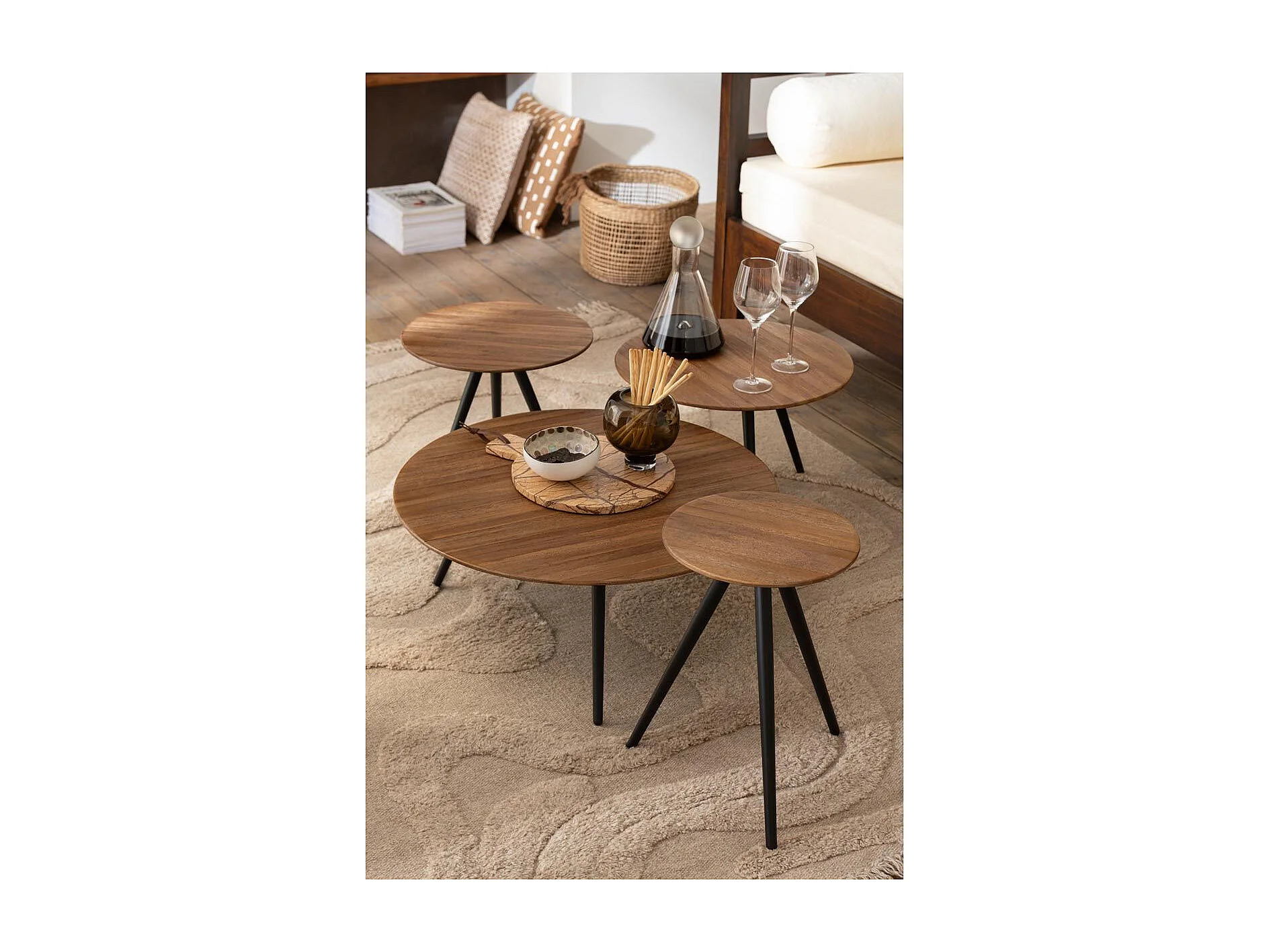 Lot de 4 Tables Basses en Bois "Teck" 70cm Naturel