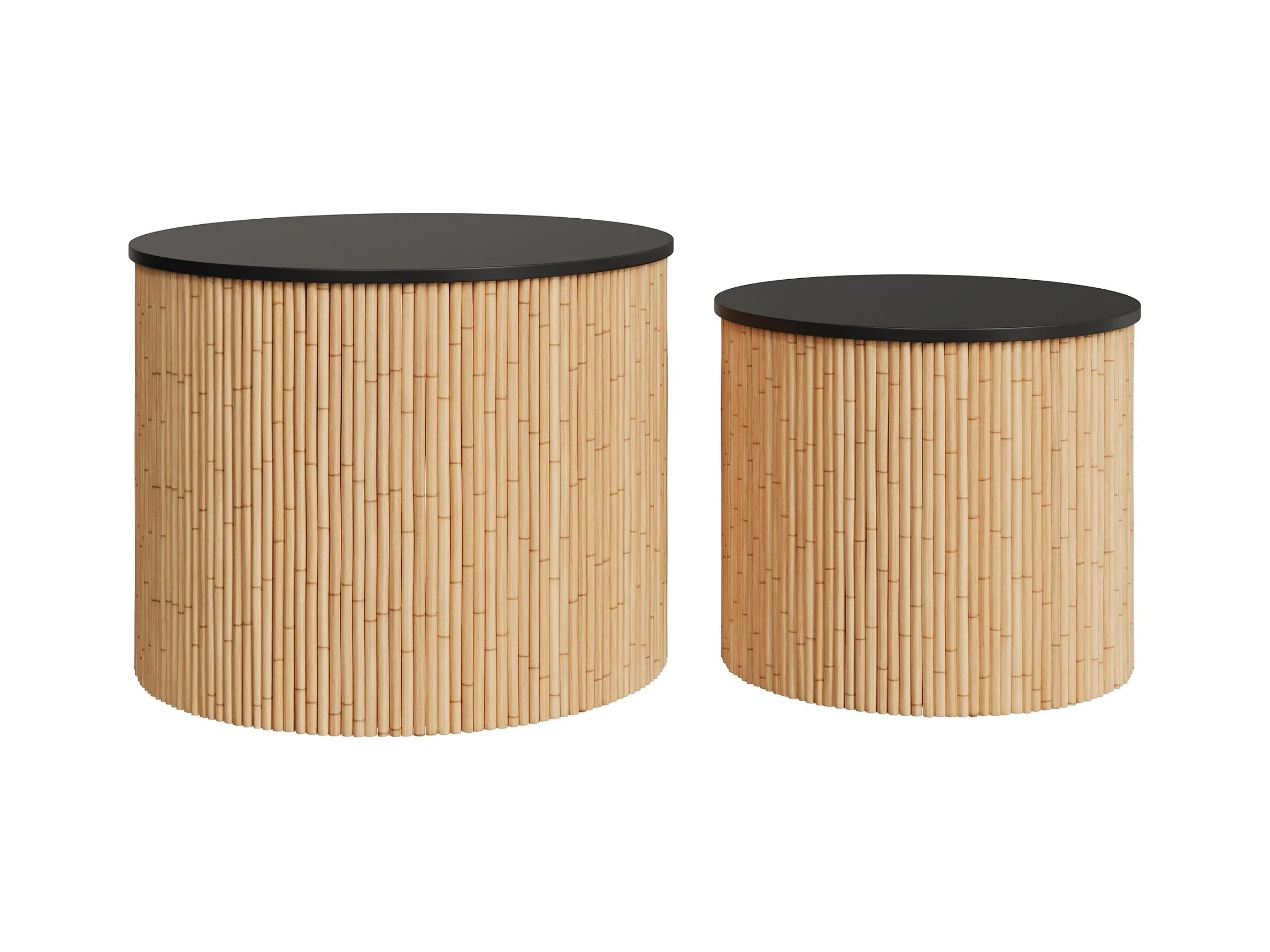 Tables basses rondes en rotin et plateau noir (lot de 2) - Owan