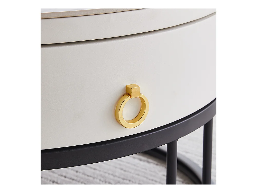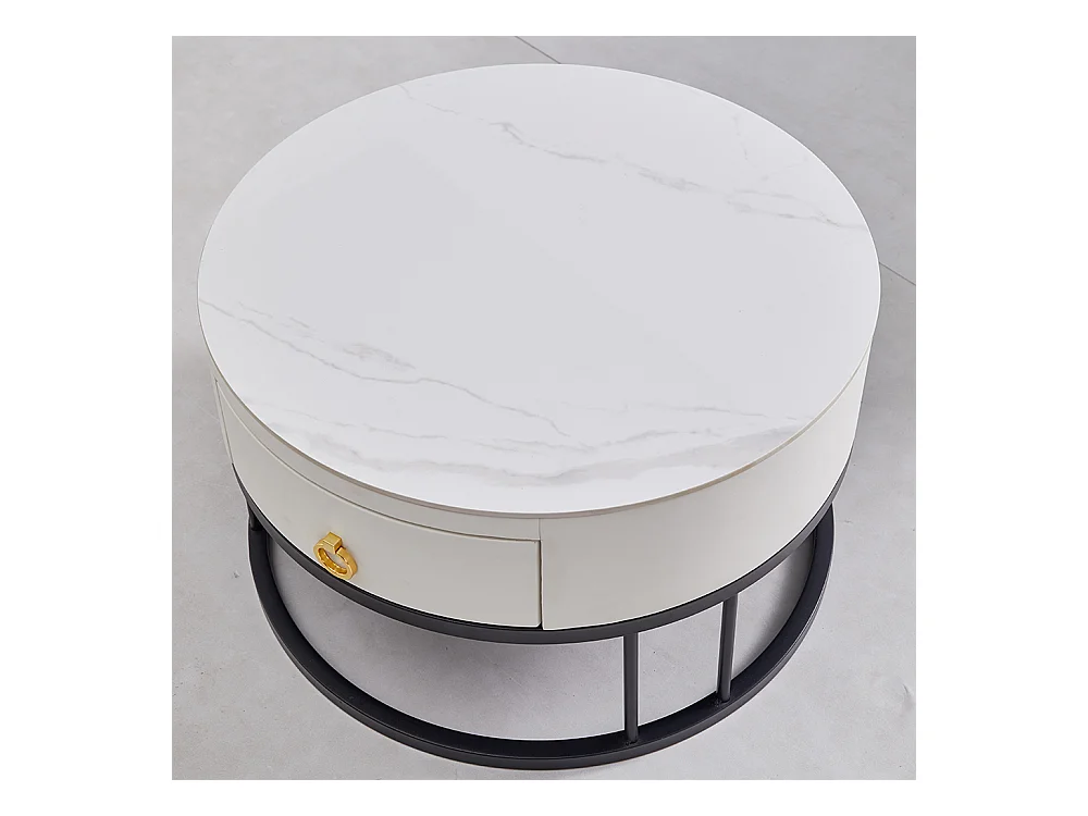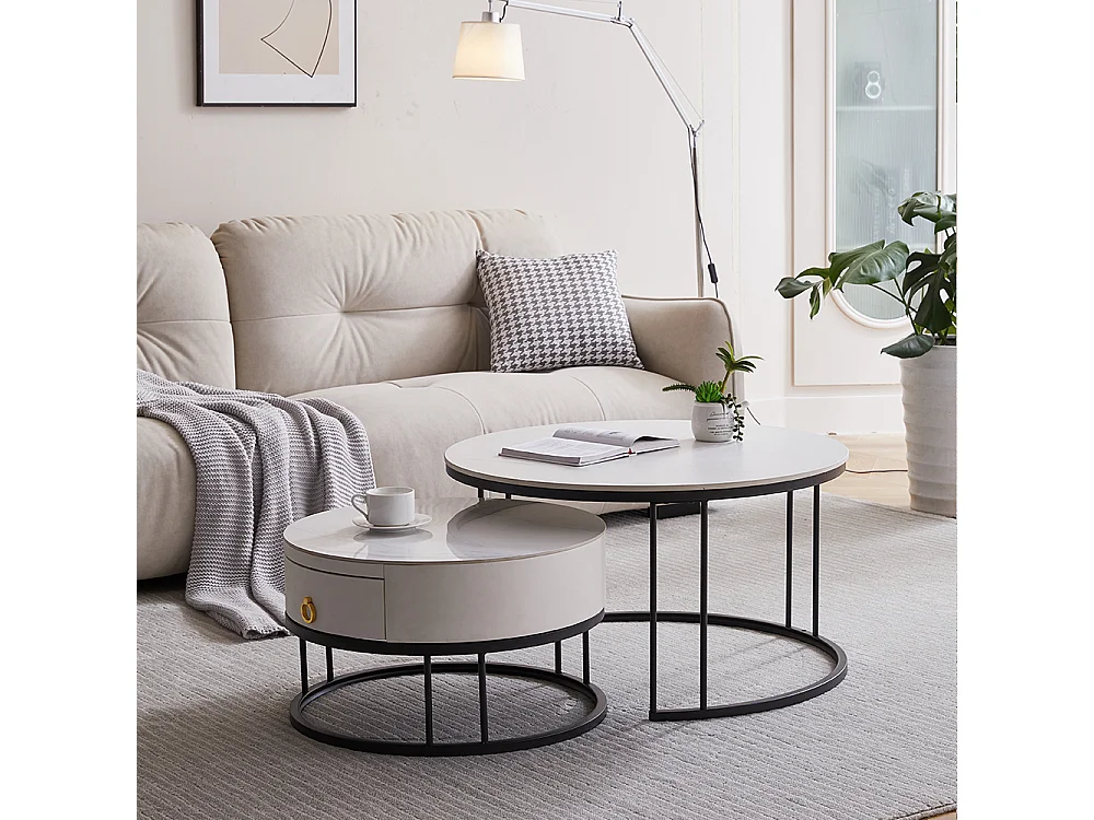 Tables basses rondes gigognes lot de 2 avec plateau en ardoise et tiroir, structure robuste