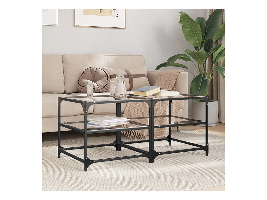 Tables basses gigognes 2 pcs dessus en verre transparent acier SHL91443