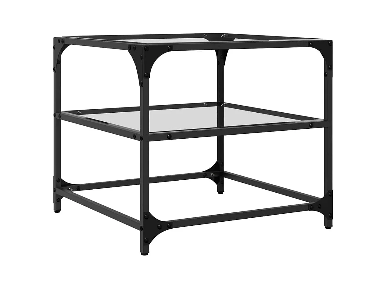Table basse salon-Table d'appoint-dessus en verre transparent 50x50x45 cm acier SHL71338