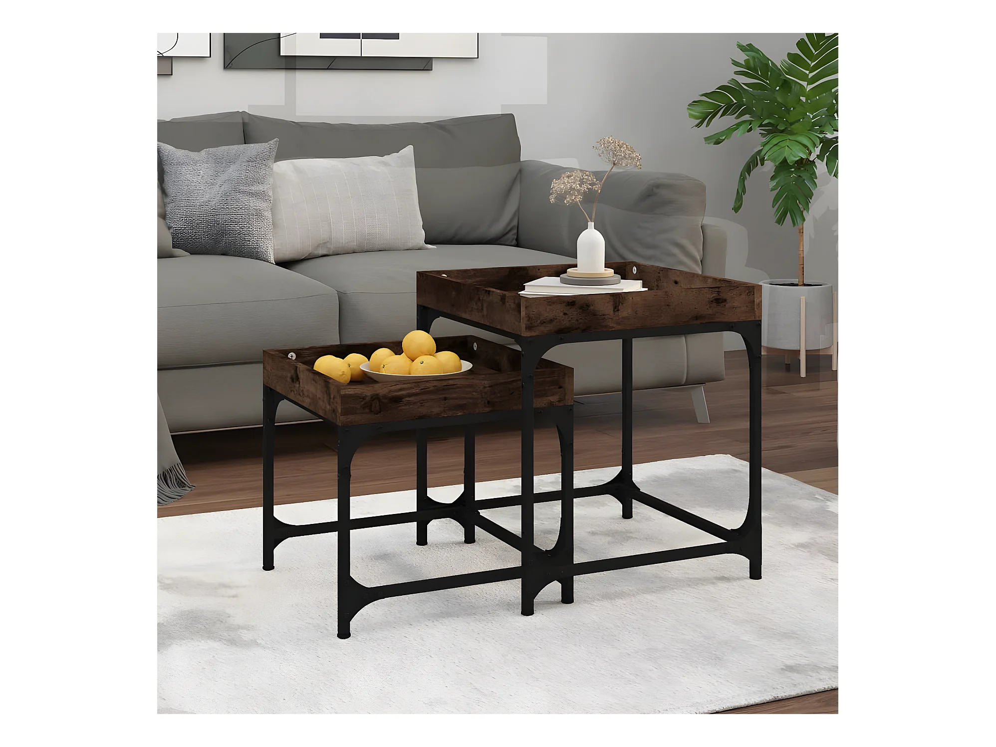 Tables d'appoint 2 pcs Chêne fumé Bois d'ingénierie