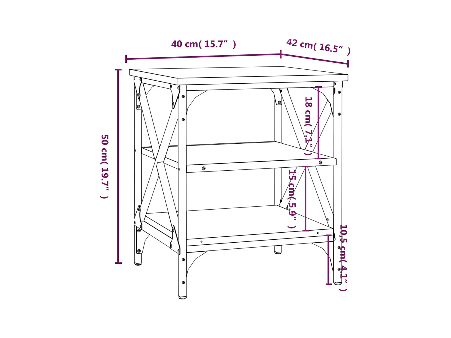 Table d'appoint Chêne fumé 40x30x60 Bois d'ingénierie
