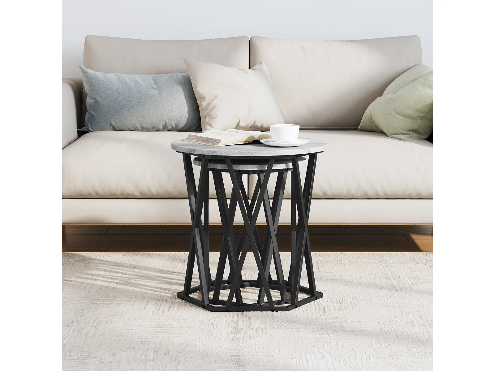 Set de 2 tables d'appoint en bois d'ingénierie gris Sonoma
