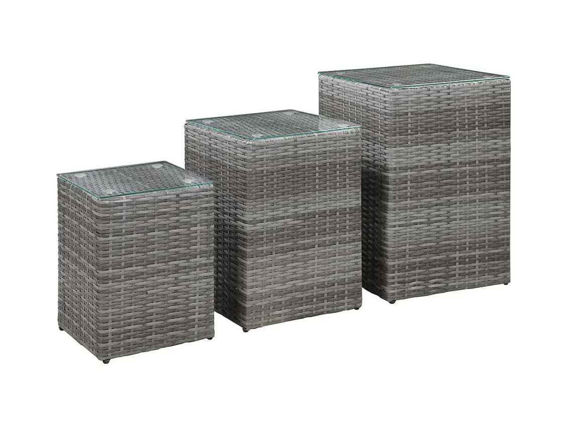 Tables d'appoint 3 pcs et dessus en verre Gris Résine tressée