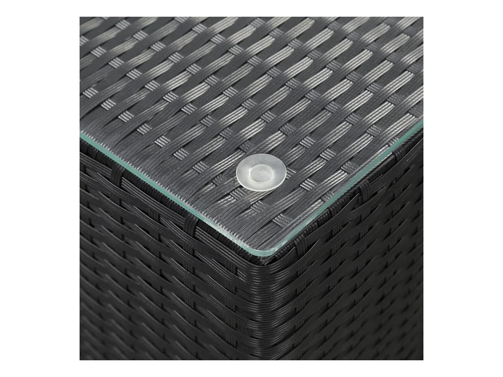 Table d'appoint noir 45x45x45 poly rotin et verre trempé