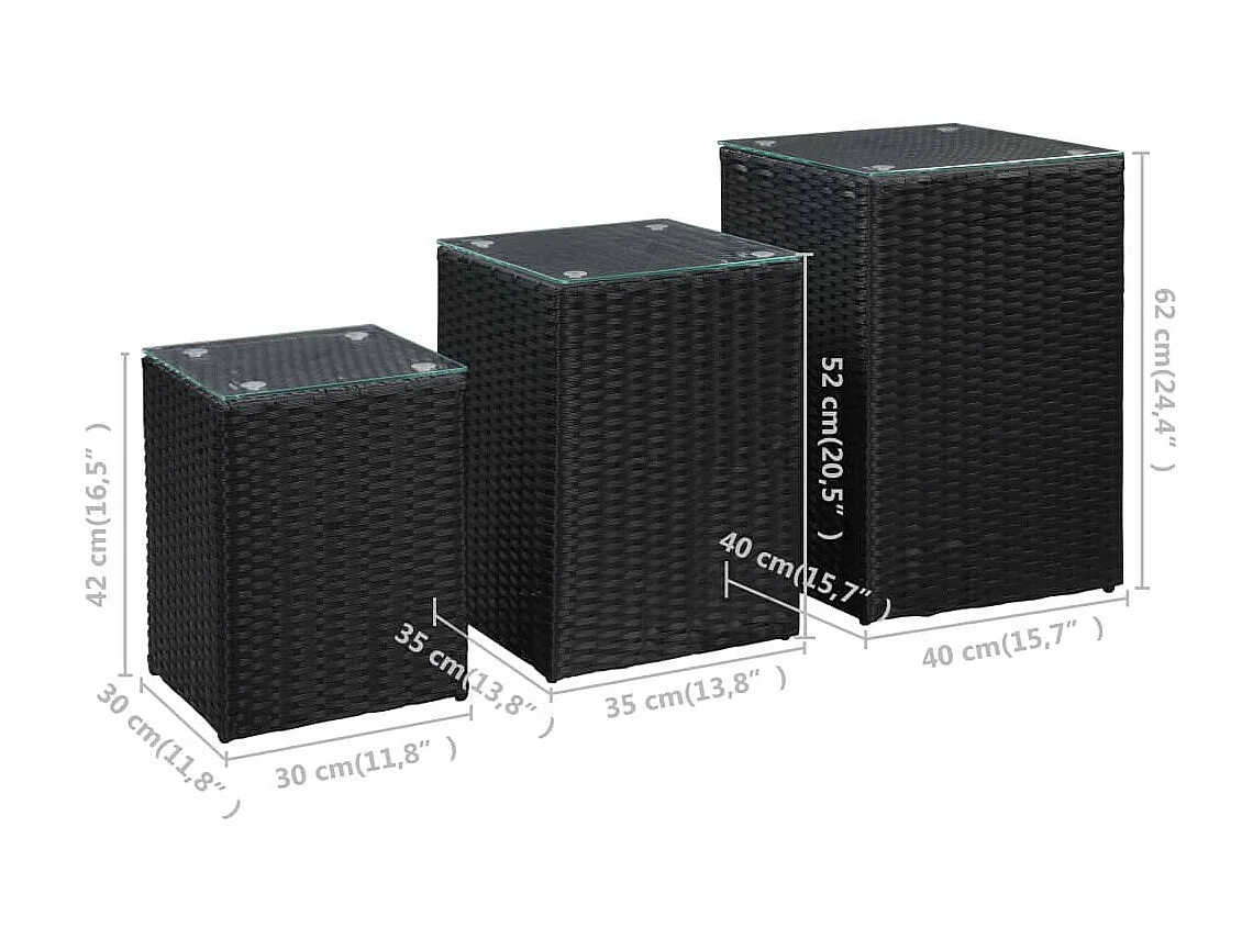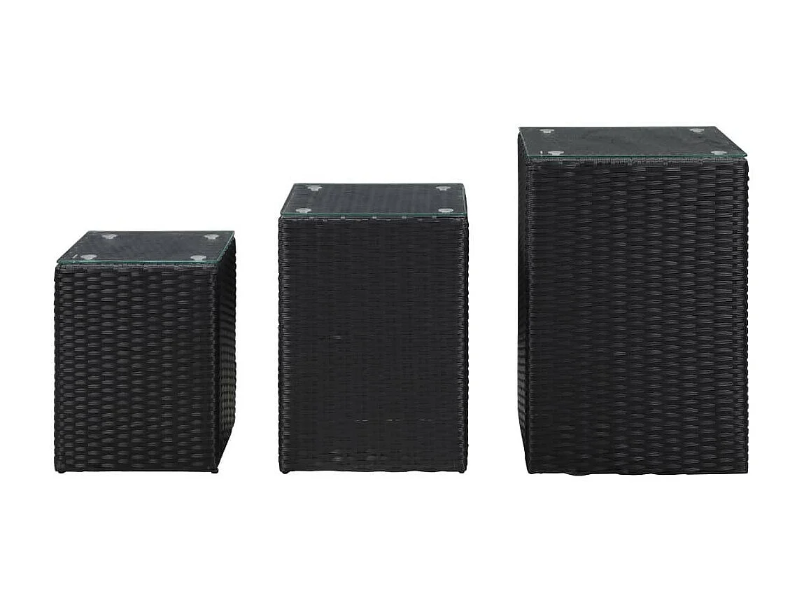 Tables d'appoint 3 pcs et dessus en verre Noir Résine tressée