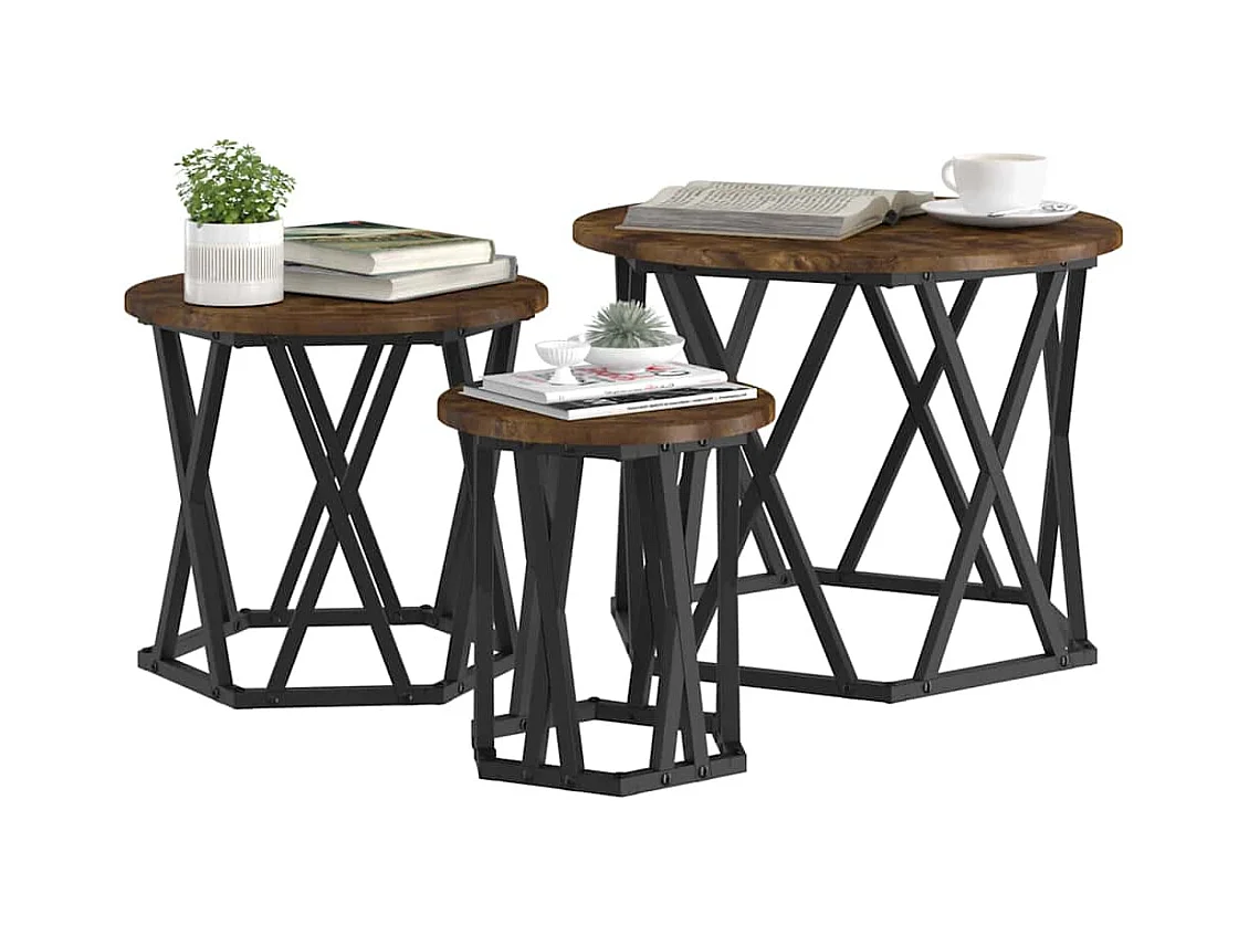 Tables d'appoint empilables 3 pièces Chêne Sonoma en bois aggloméré SHL51615