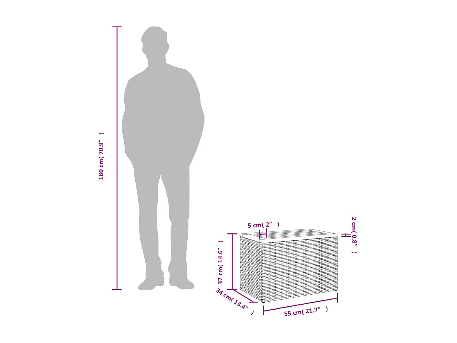 Table de jardin avec dessus en bois noir 110x68x70 cm rotin FR117201