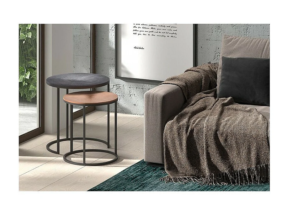 Tables d'appoint gigognes rondes en métal bicolore collection LIVOS. Meuble style industriel