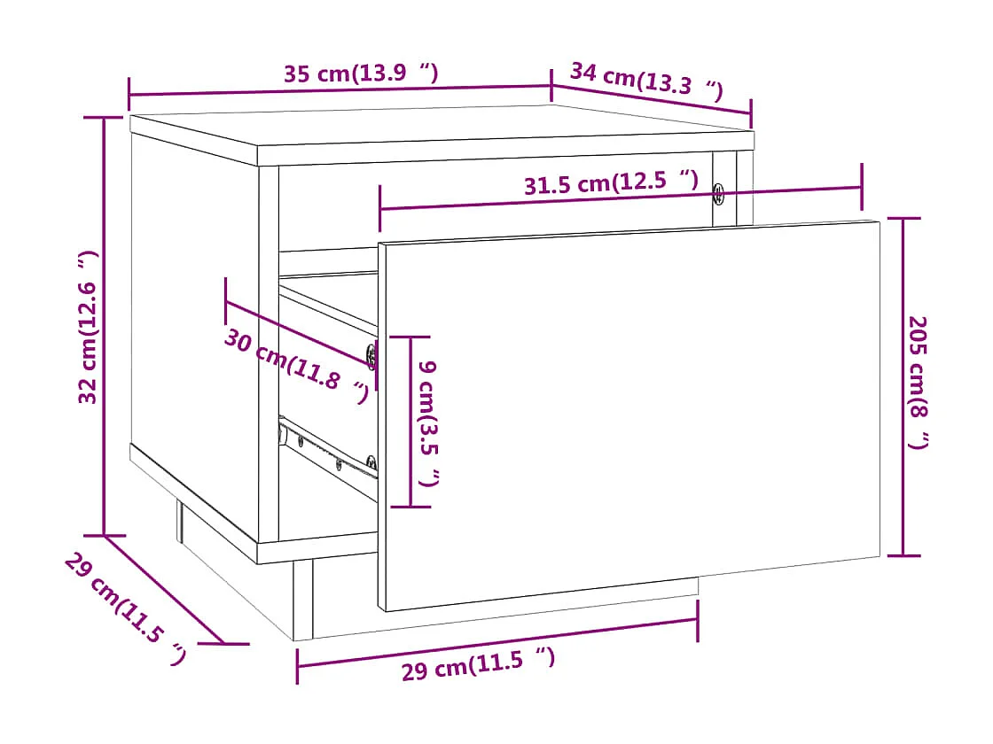Tables de chevet 2 pcs 35x34x32 Bois de pin solide