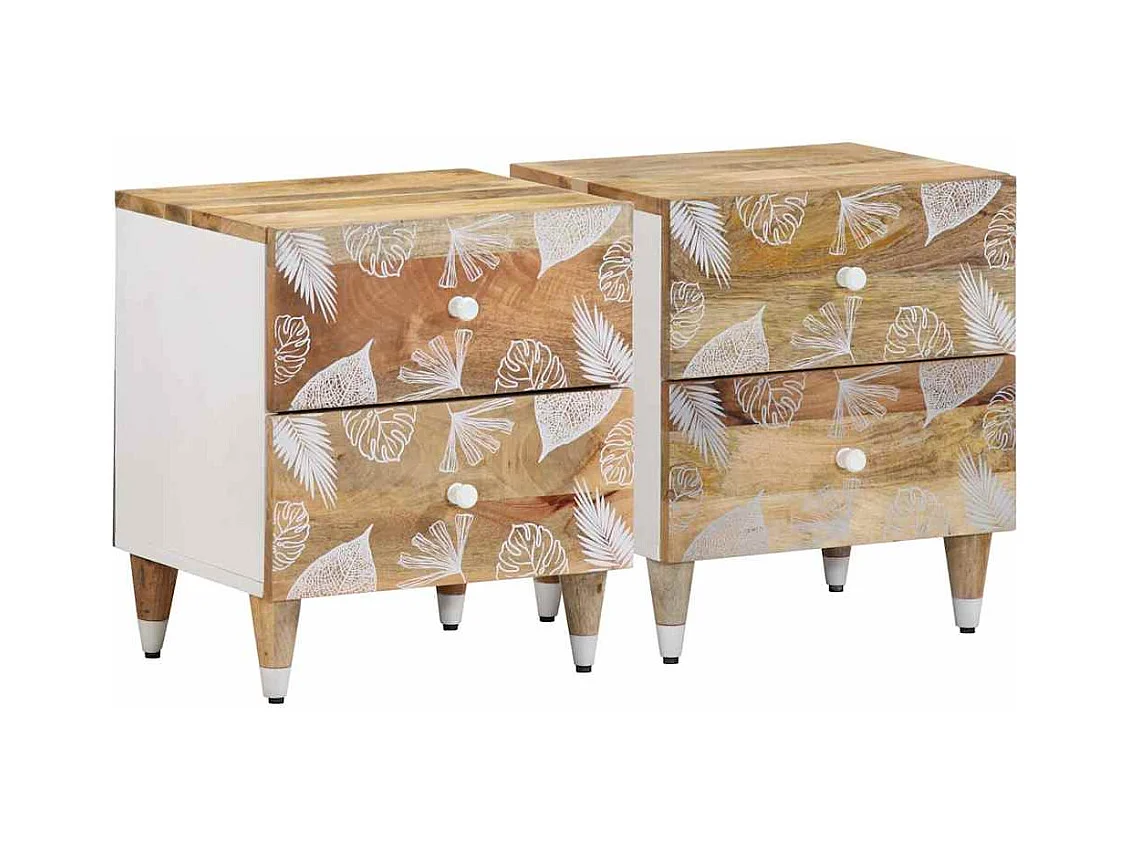 Tables de chevet 2 pcs 40x33,5x46 cm Bois de manguier solide