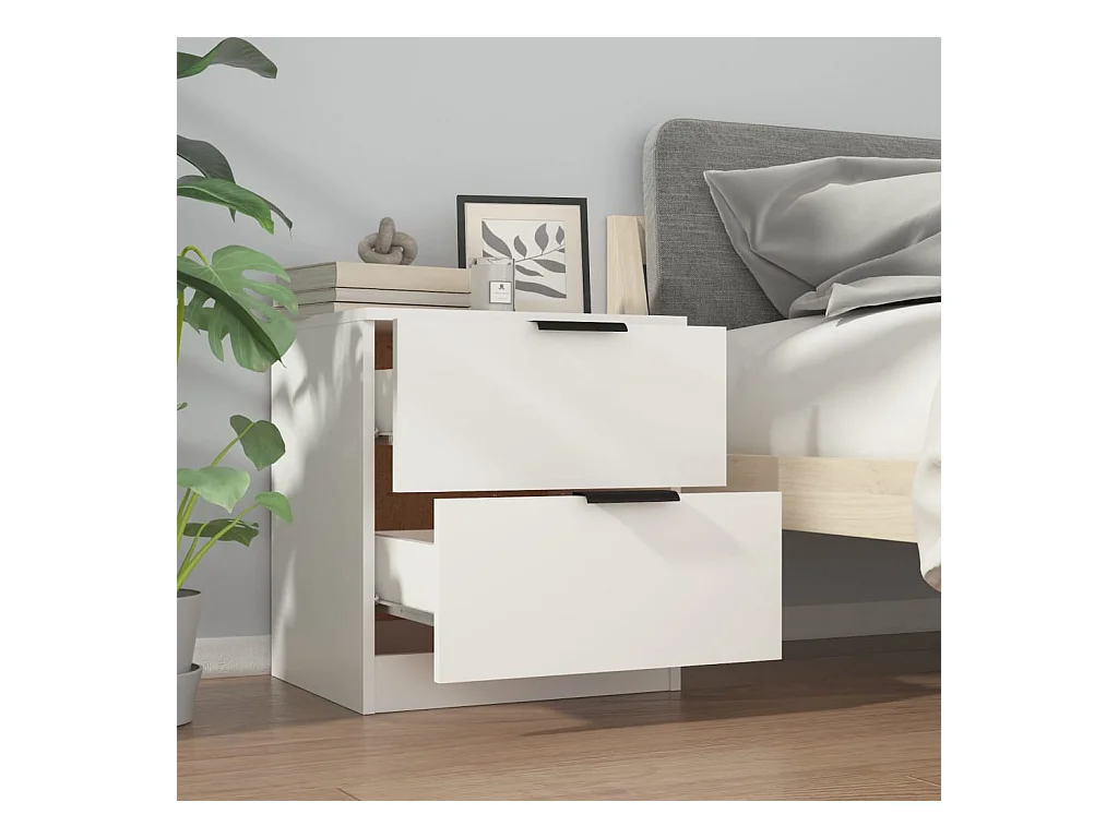 Tables de chevet 2 pcs Blanc Bois d'ingénierie
