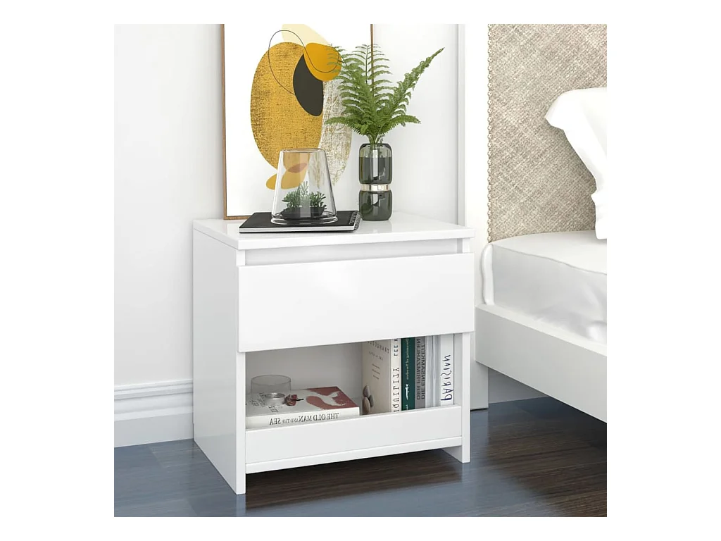 Table de chevet 2 étagères bois blanc brillant Fefi