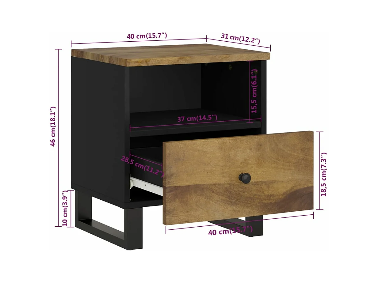 Tables de chevet 2 pcs Bois de manguier solide et d'ingénierie