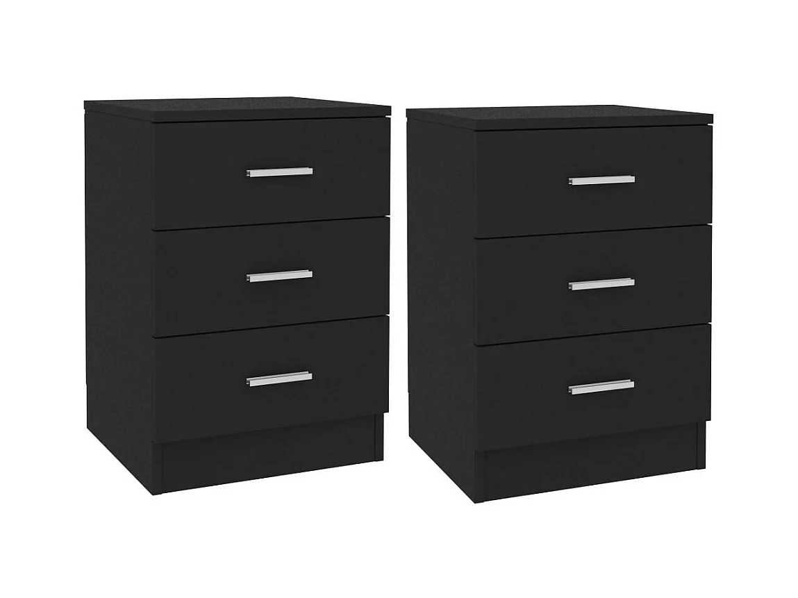 Table de chevet 2 tiroirs bois noir Ricio - Lot de 2