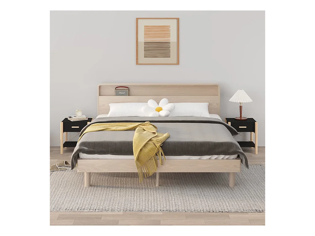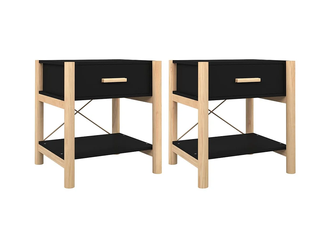 Lot de 2 Tables de chevet Noir 42x38x45 cm Bois d’ingénierie GHR99198