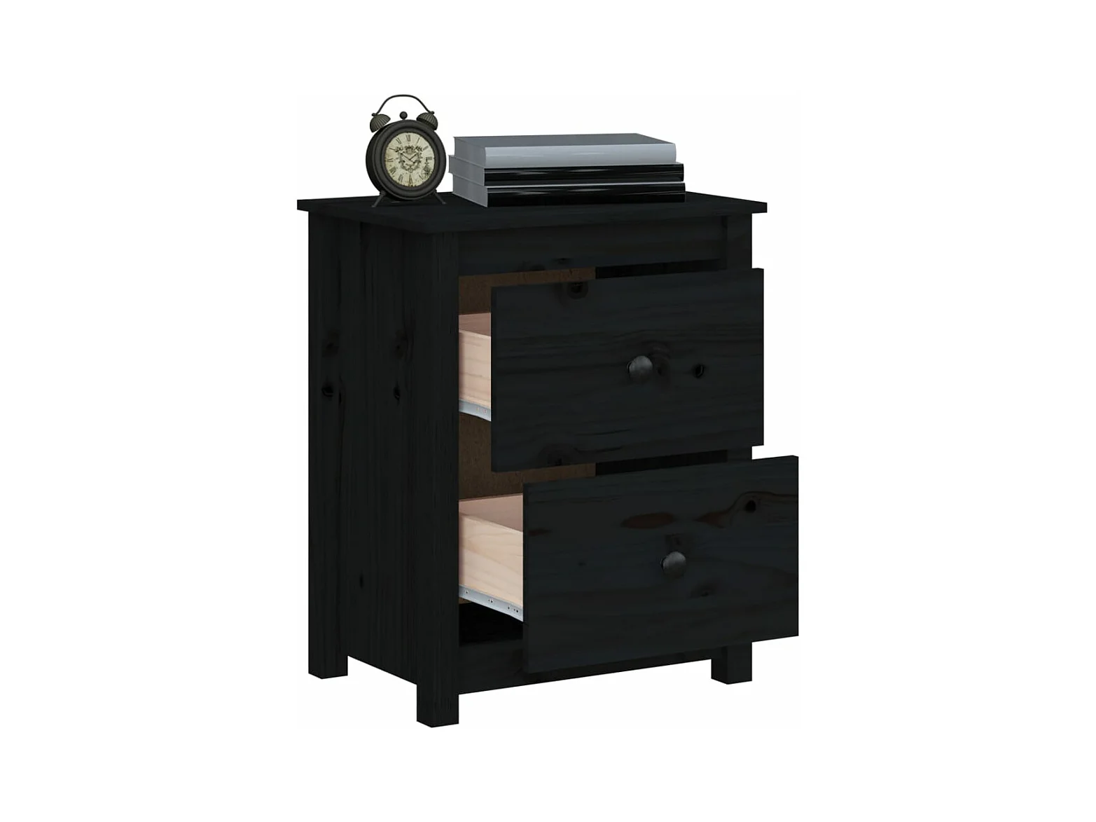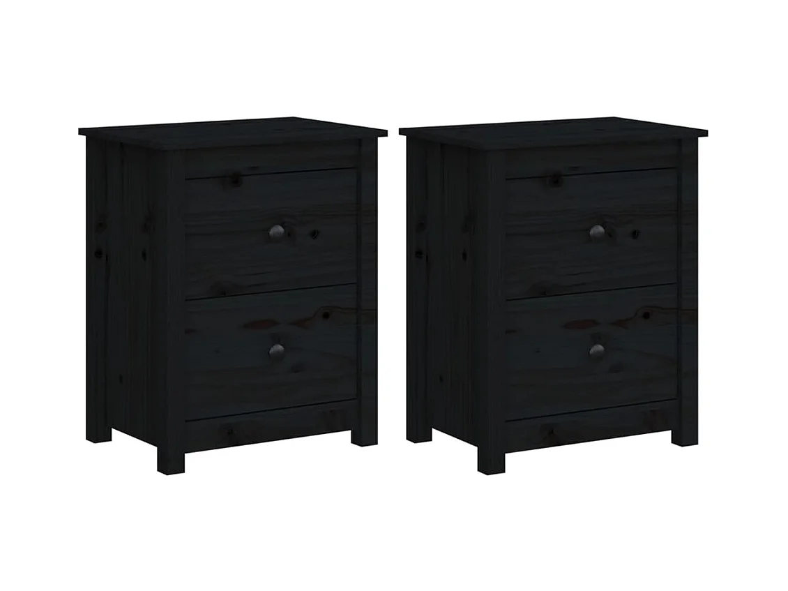 Tables de chevet 2 pcs Noir 50x35x61,5 Bois de pin massif