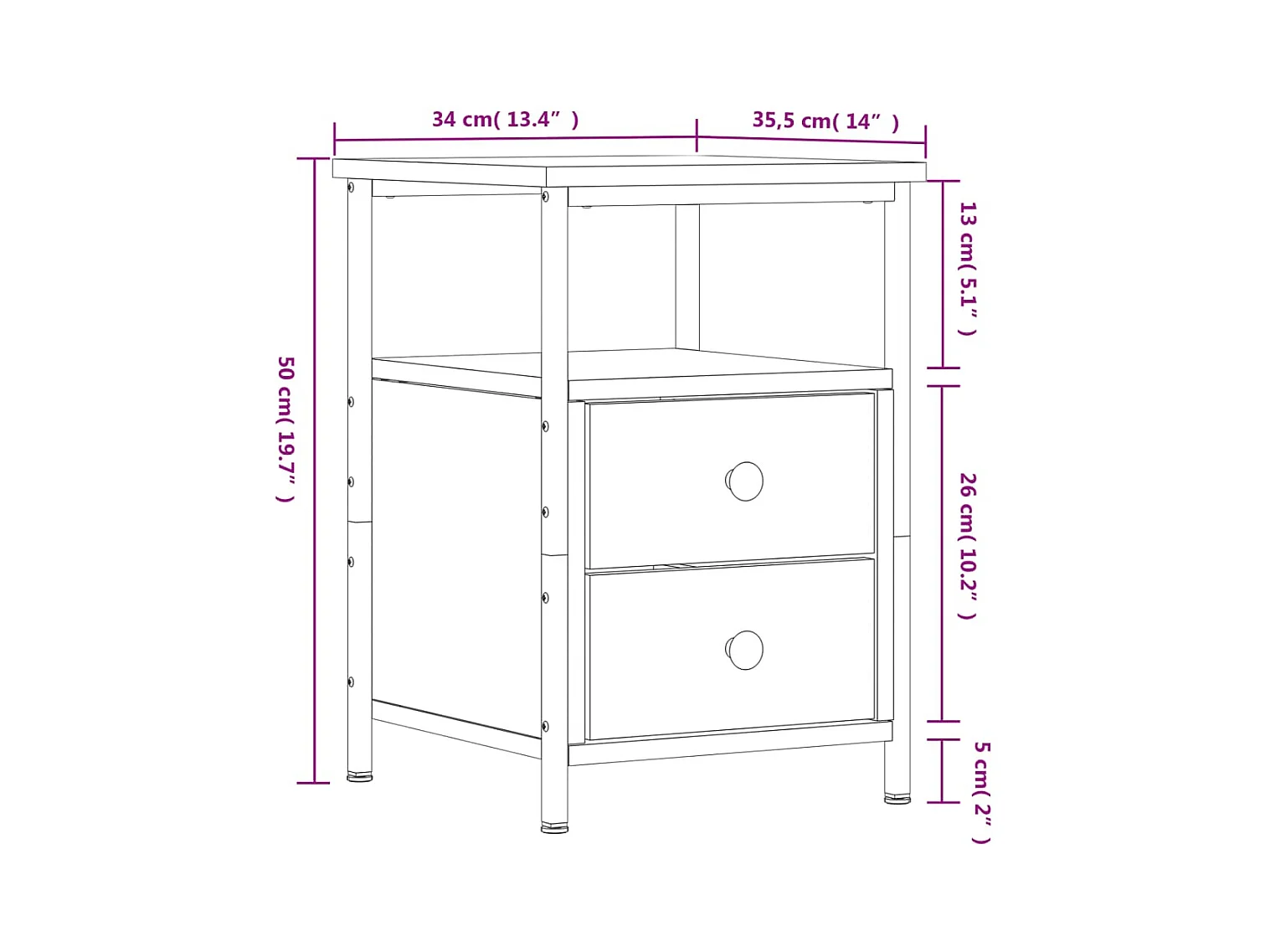 Table de chevet sonoma gris 34x35,5x50 cm bois d'ingénierie