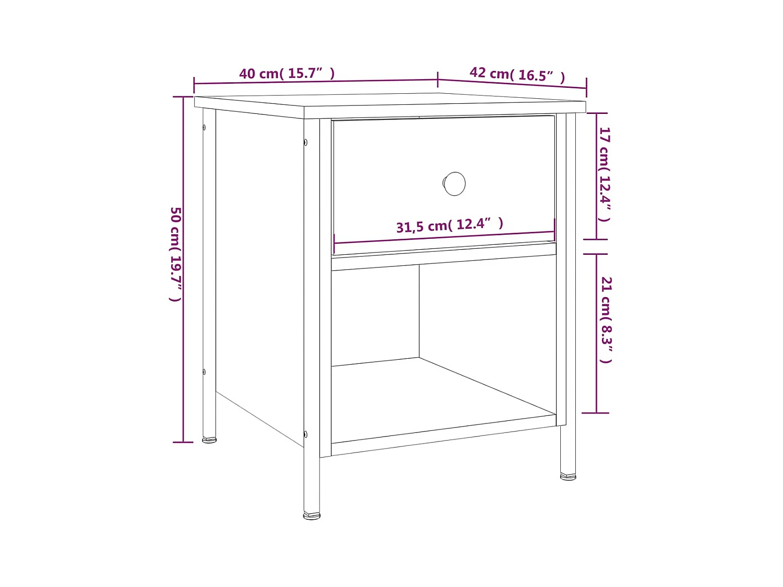 Table de chevet sonoma gris 40x40x50 cm bois d'ingénierie