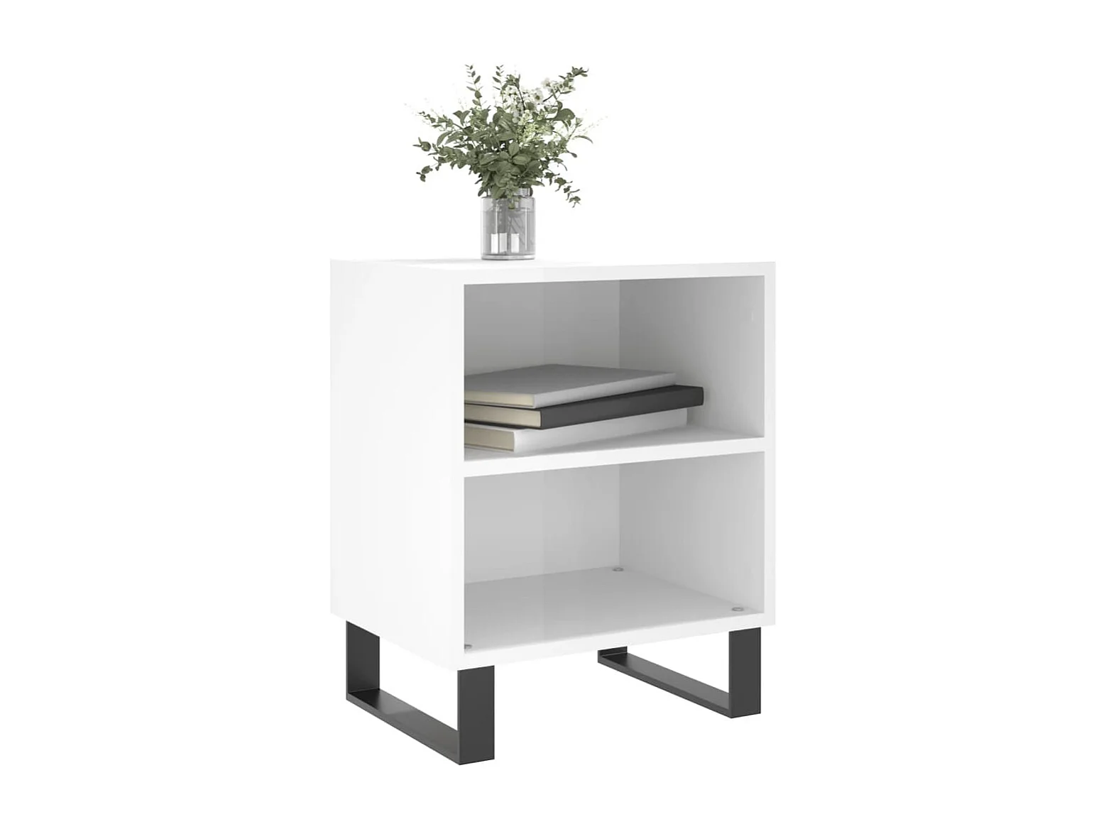 Table de chevet blanc brillant 40x30x50 bois d’ingénierie