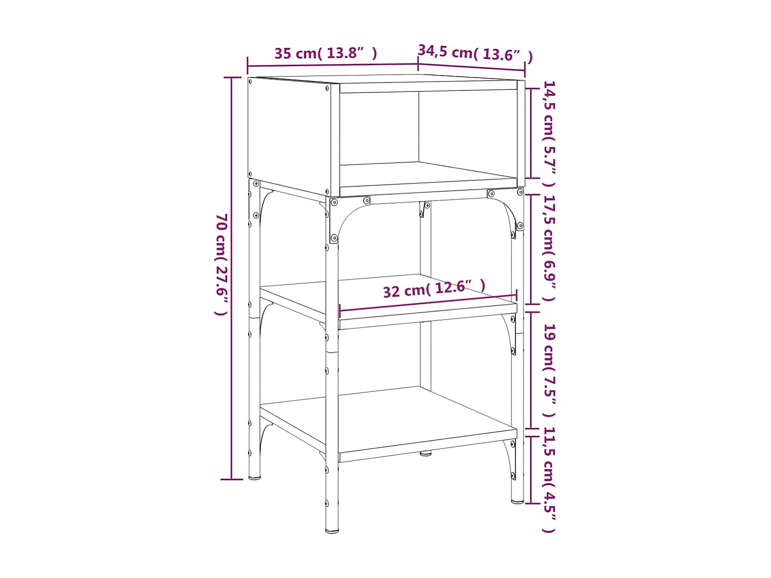 Table de chevet chêne sonoma 32x42x70 bois d'ingénierie