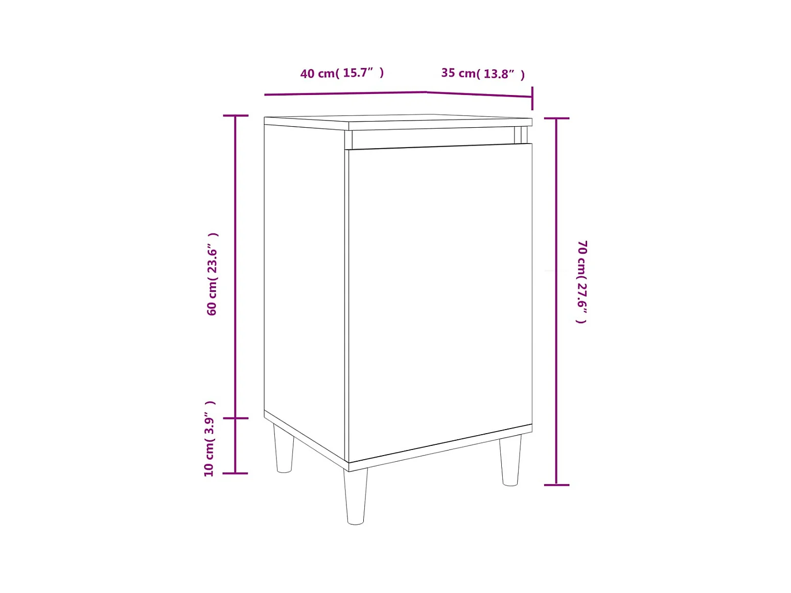 Table de chevet chêne marron 40x35x70