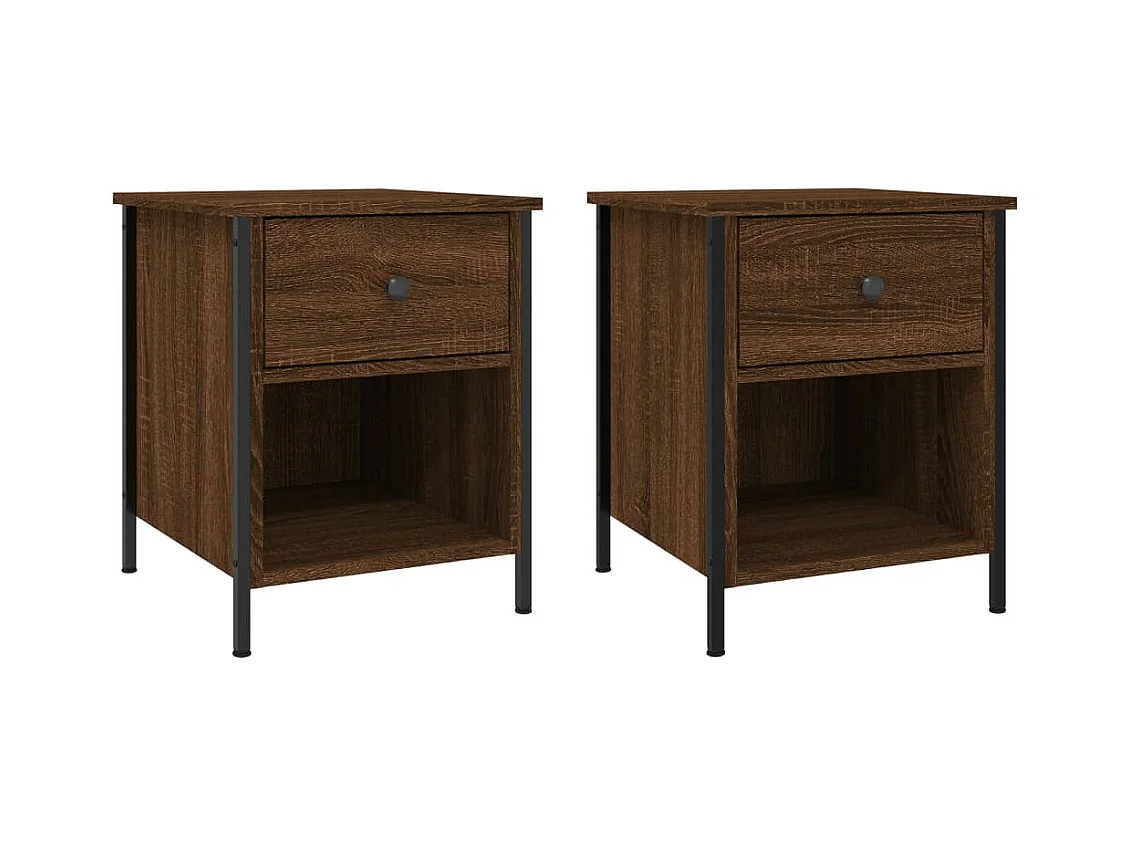 Tables de chevet avec pieds en métal 2pcs Chêne fumé 40x30x50