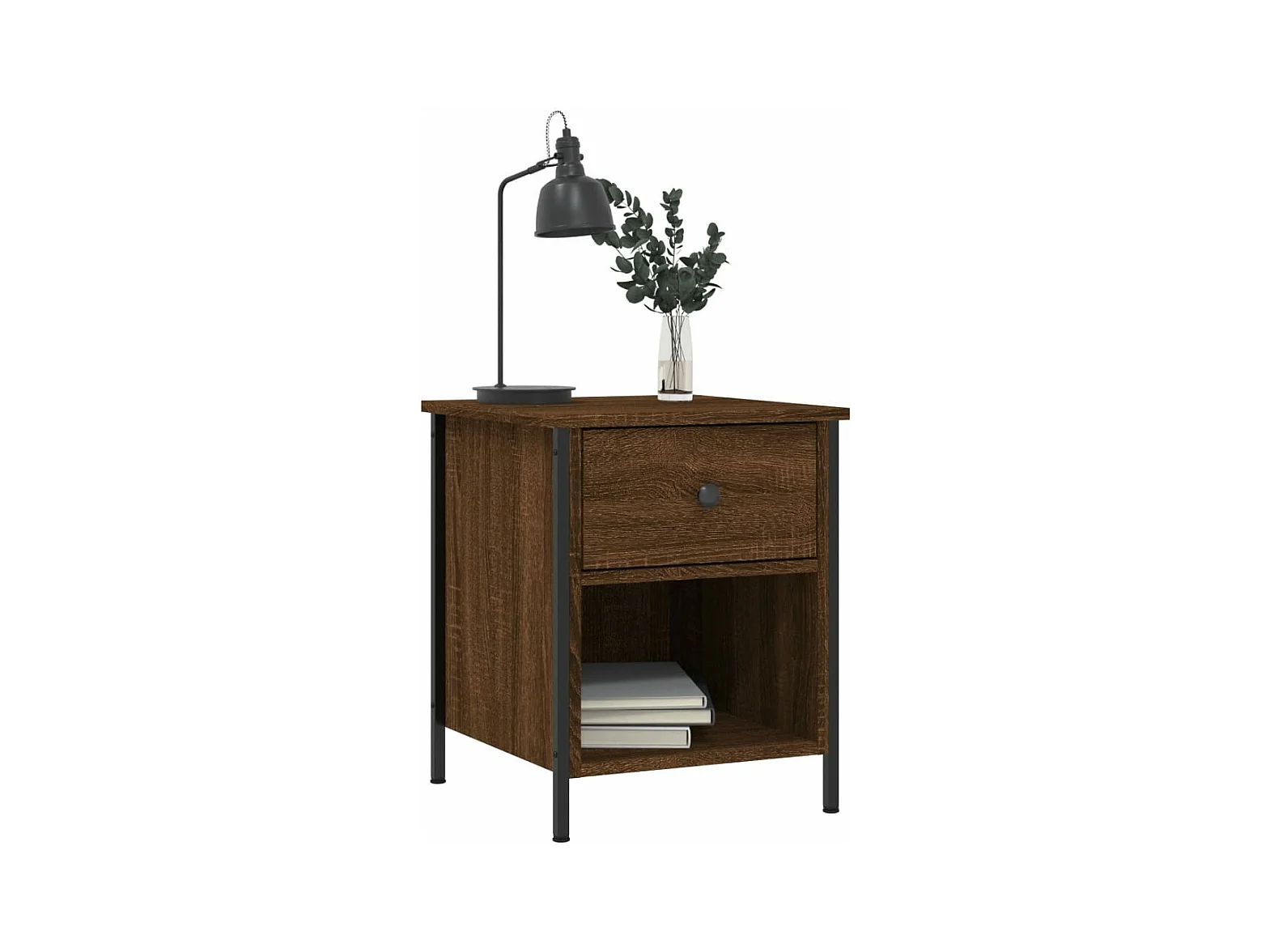 Table de chevet avec pieds en métal Chêne marron 40x30x50