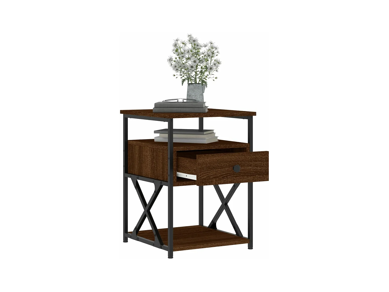 Table de chevet 40x30x55,5 bois d’ingénierie et fer