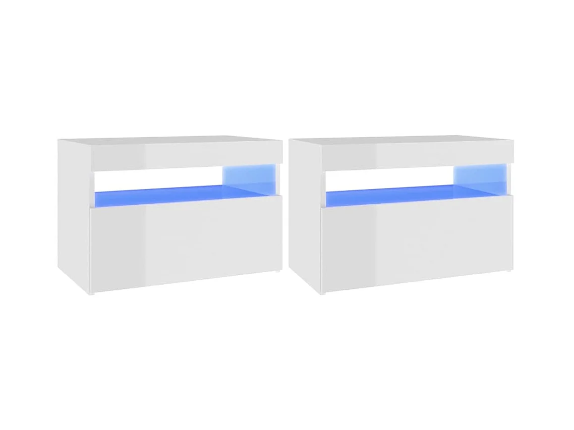 Tables de chevet à LED 2pcs Blanc brillant 60x35x40