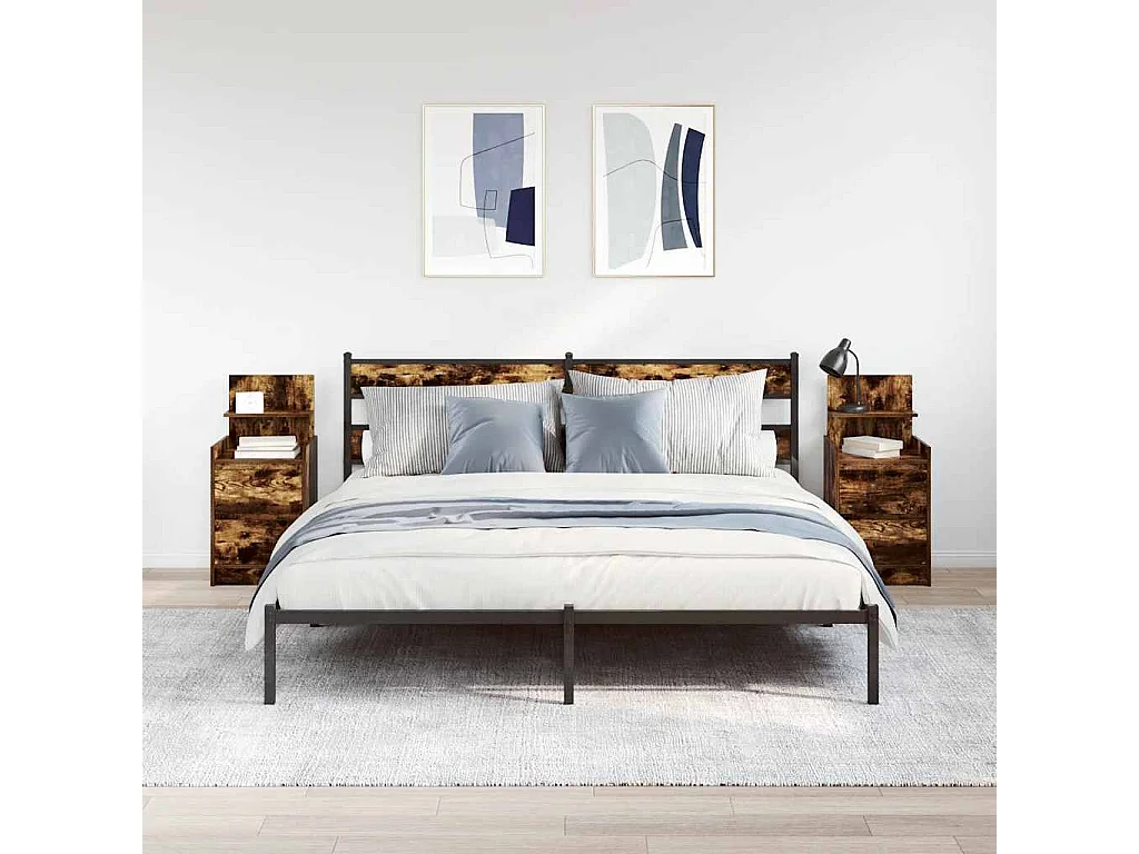 Armoires de chevet et lumières LED 2 pcs chêne fumé