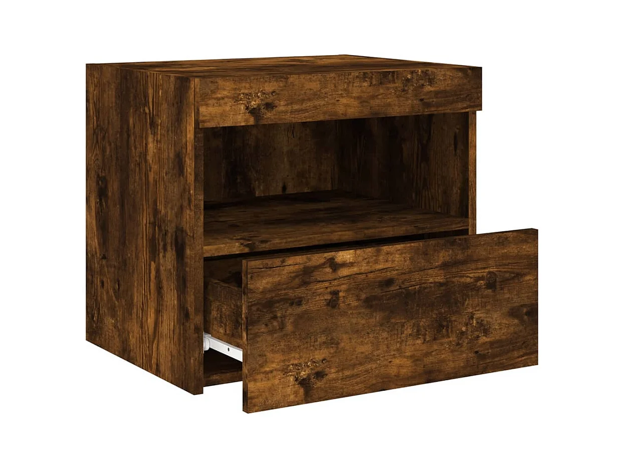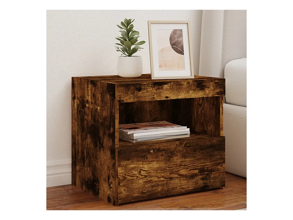 Table de chevet avec lumières LED chêne fumé 50x40x45