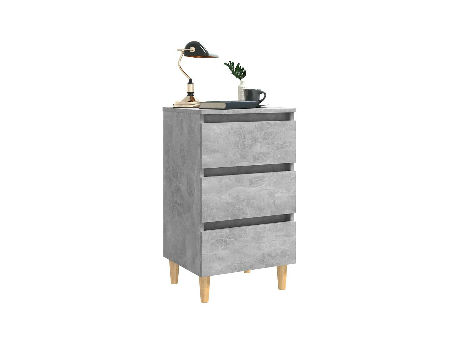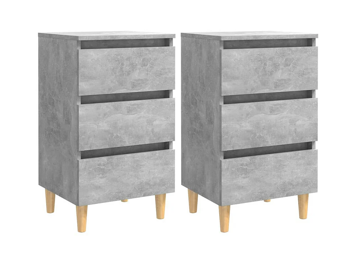 Tables de chevet avec pieds en bois 2 pcs Gris béton 40x35x69