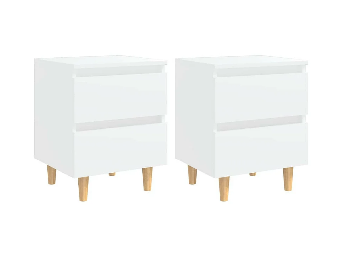 Tables de chevet pieds en pin 2 pcs Blanc brillant 40x35x50
