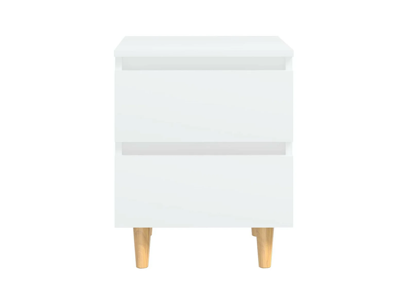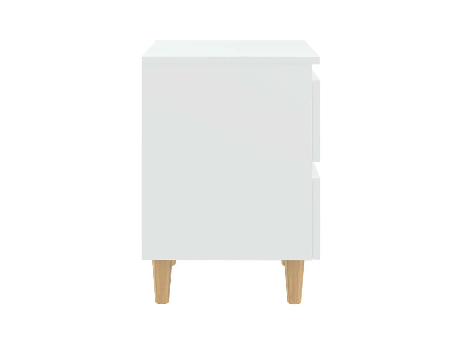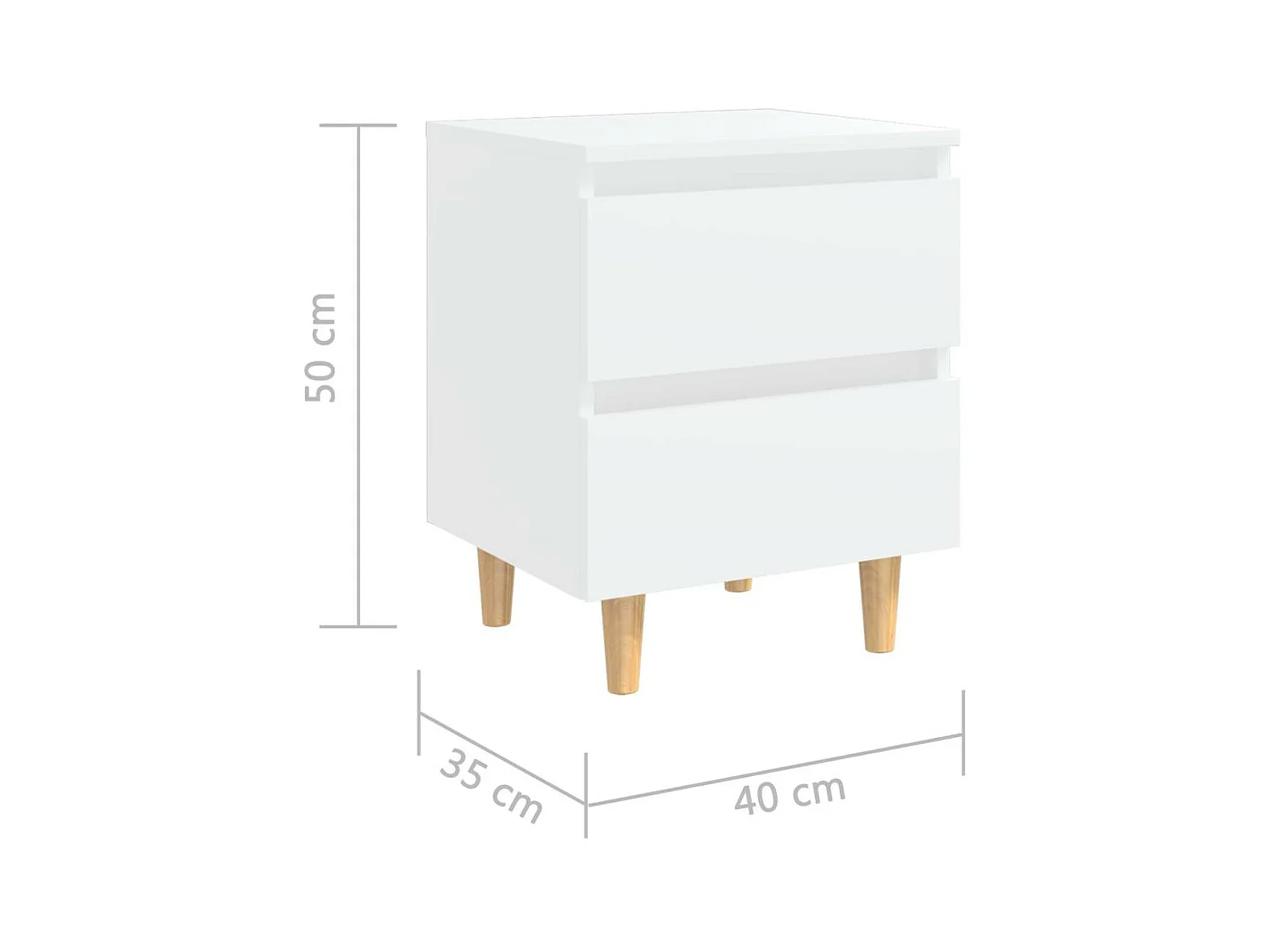 Table de chevet avec pieds en bois Blanc brillant 40x35x69