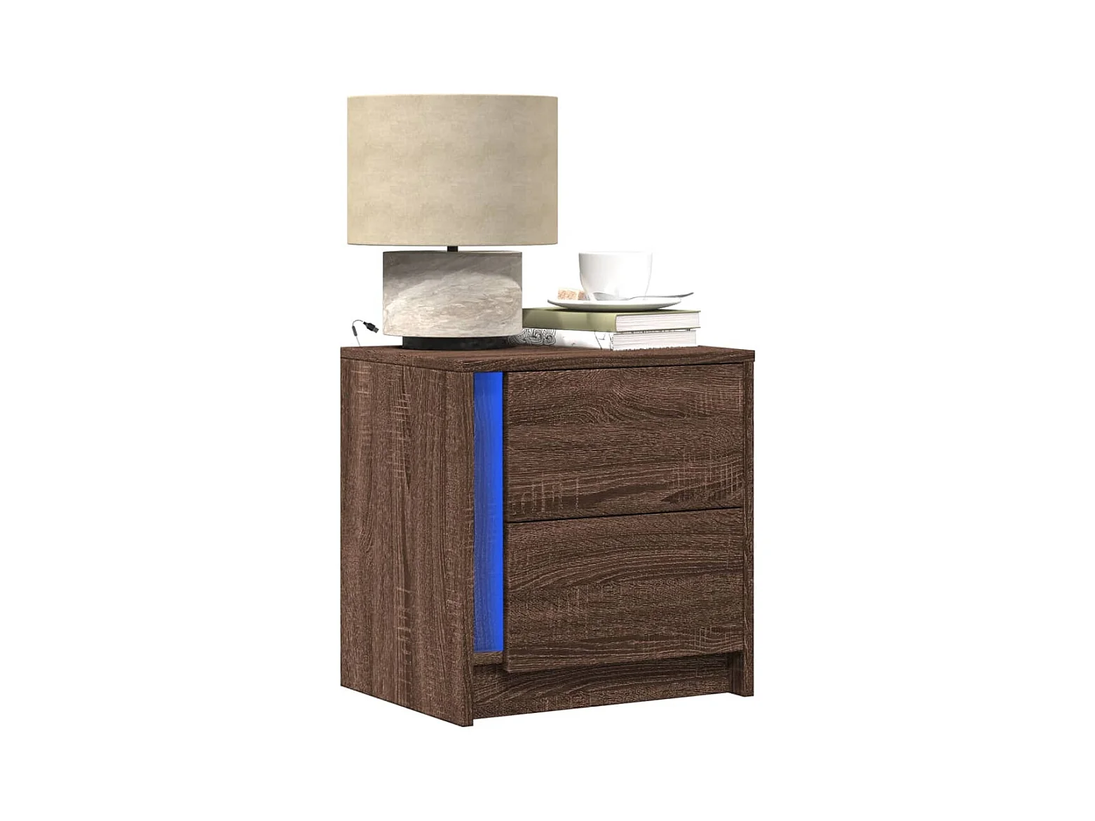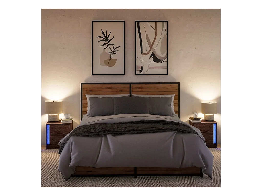 Table de chevet et lumières LED chêne marron bois ingénierie