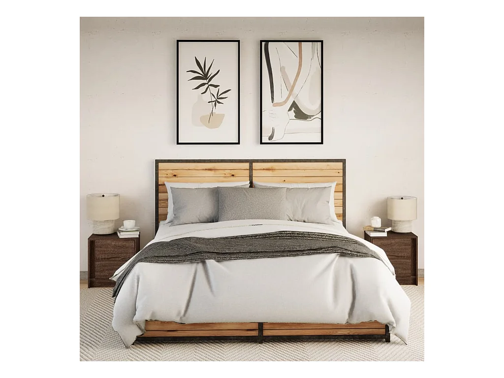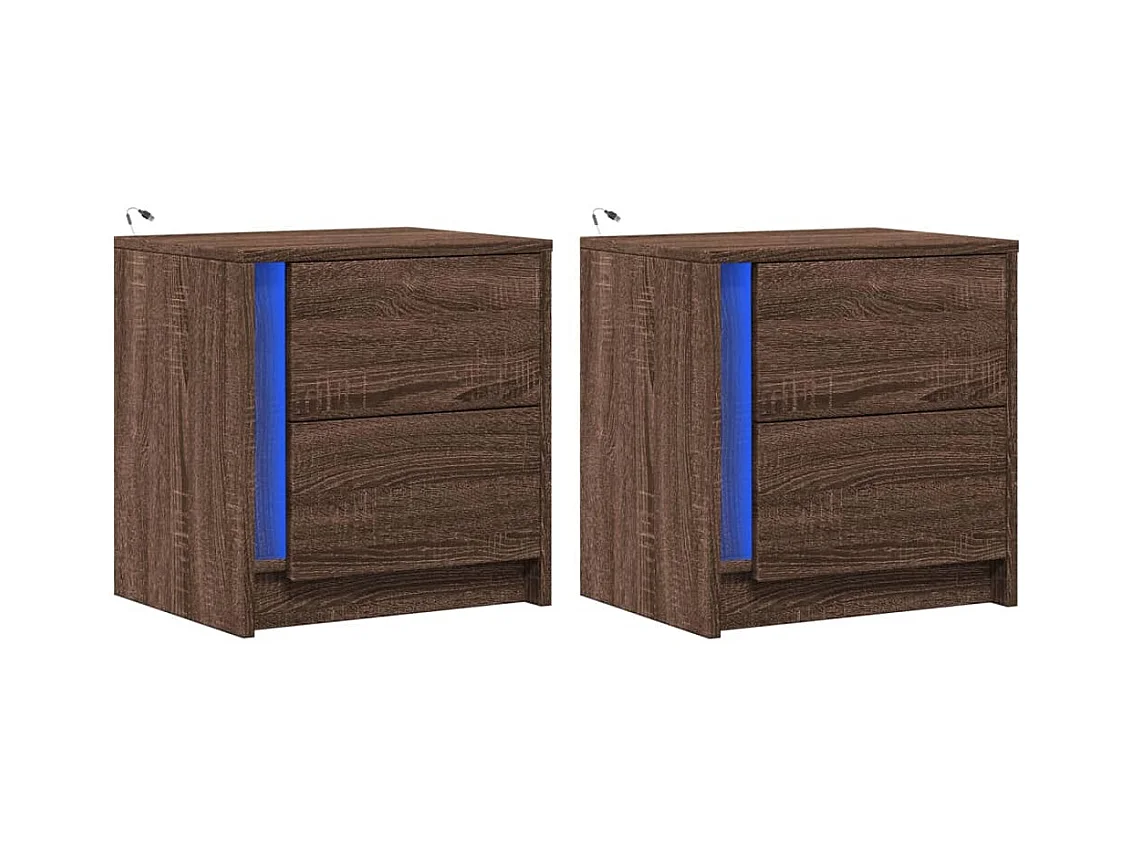 Tables de chevet et lumières LED 2 pièces chêne marron