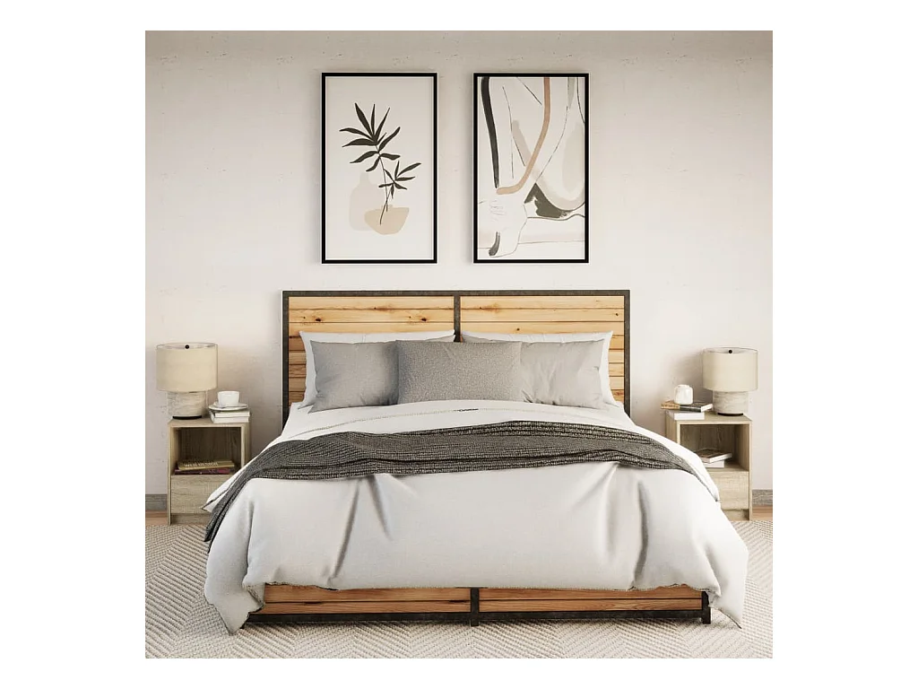 Tables de chevet et lumières LED 2 pièces chêne sonoma
