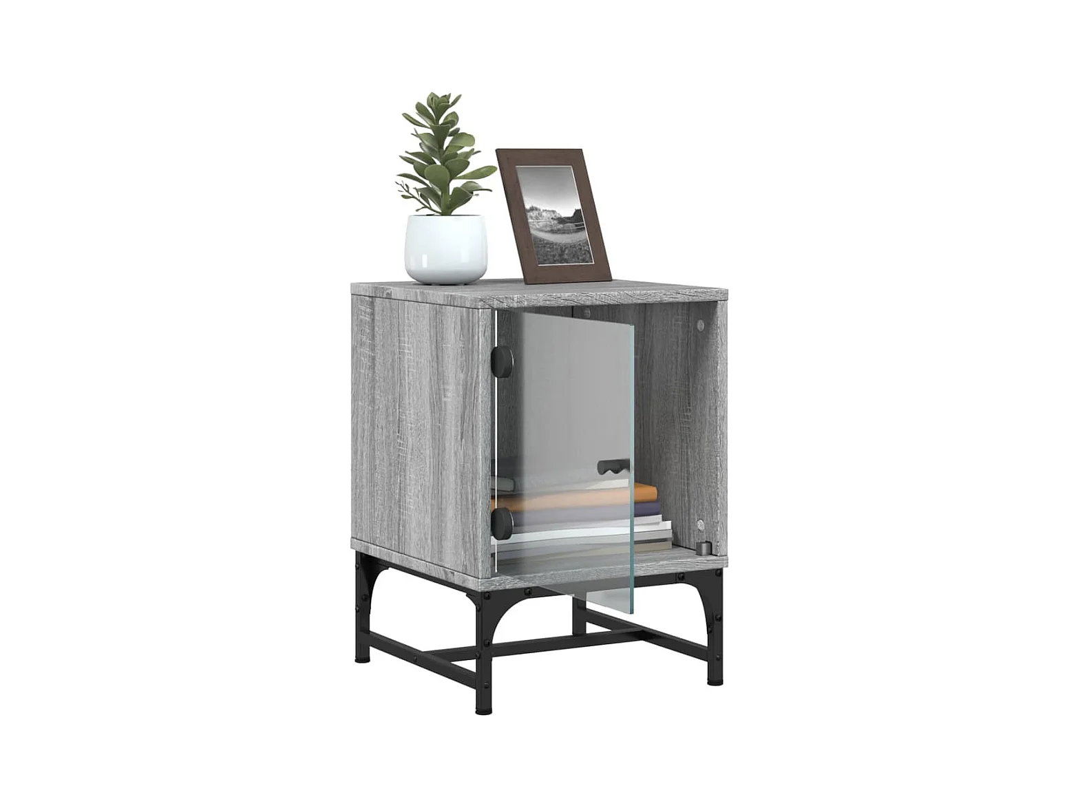 Table de chevet avec porte en verre sonoma gris 35x37x42