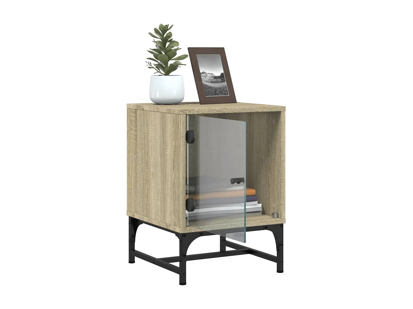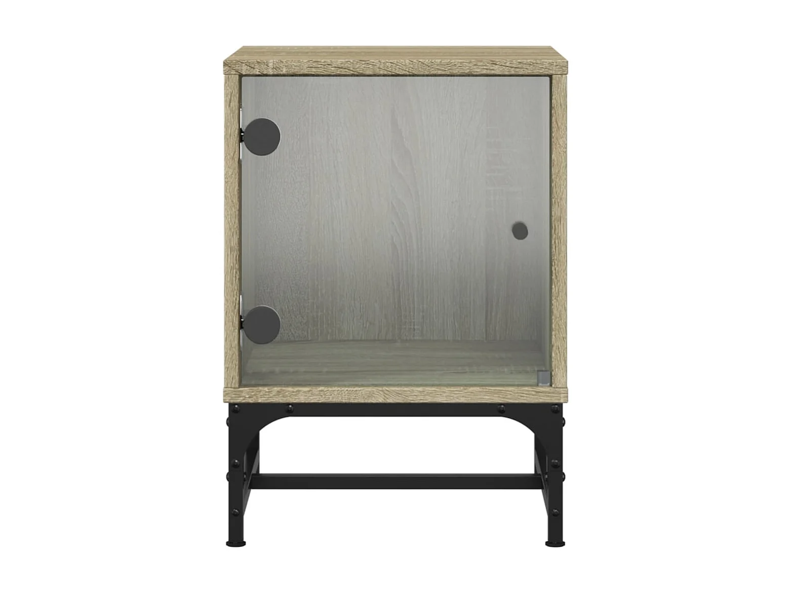 Table de chevet avec porte en verre chêne sonoma 35x37x35